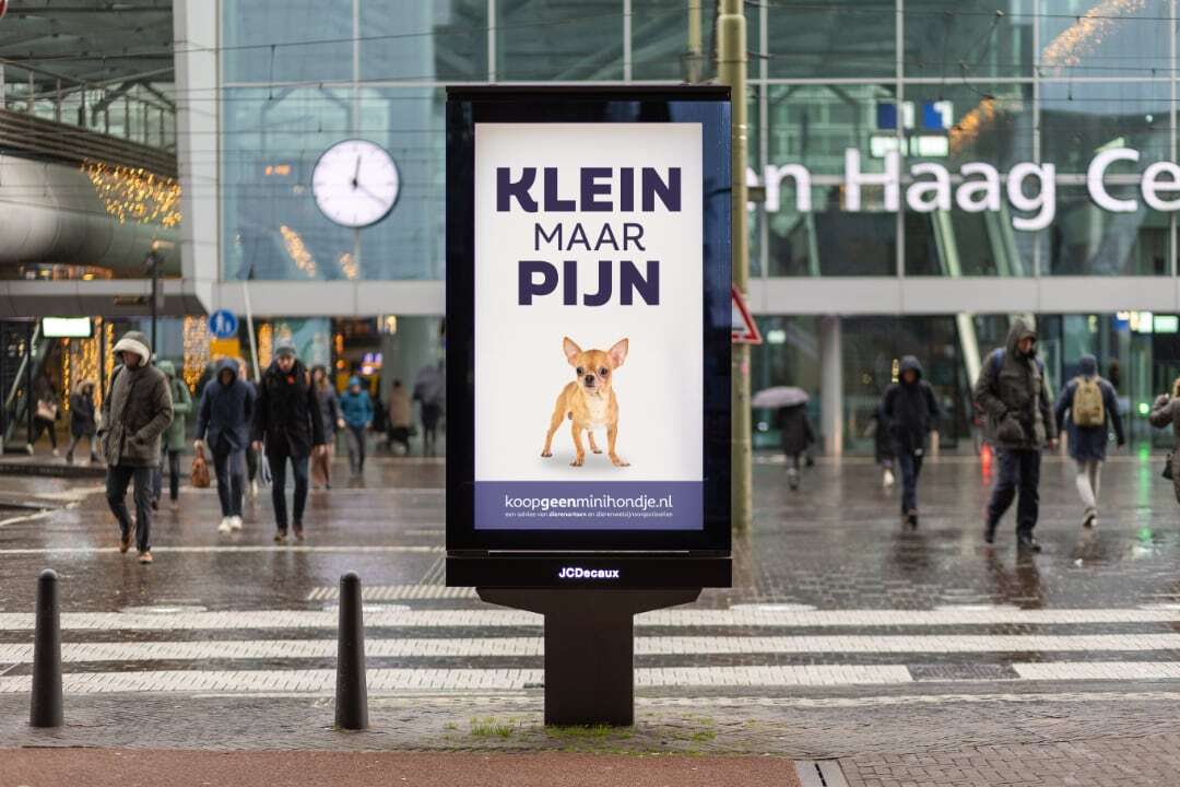 De campagne ‘Klein maar pijn’ is een initiatief van dierenartsen en dierenwelzijnsorganisaties. Op de website koopgeenminihondje.nl vind je meer informatie over de risico’s van extreem kleine hondenrassen en tips waar je op kunt letten als je een hond wilt aanschaffen of al in bezit bent van een minihondje.